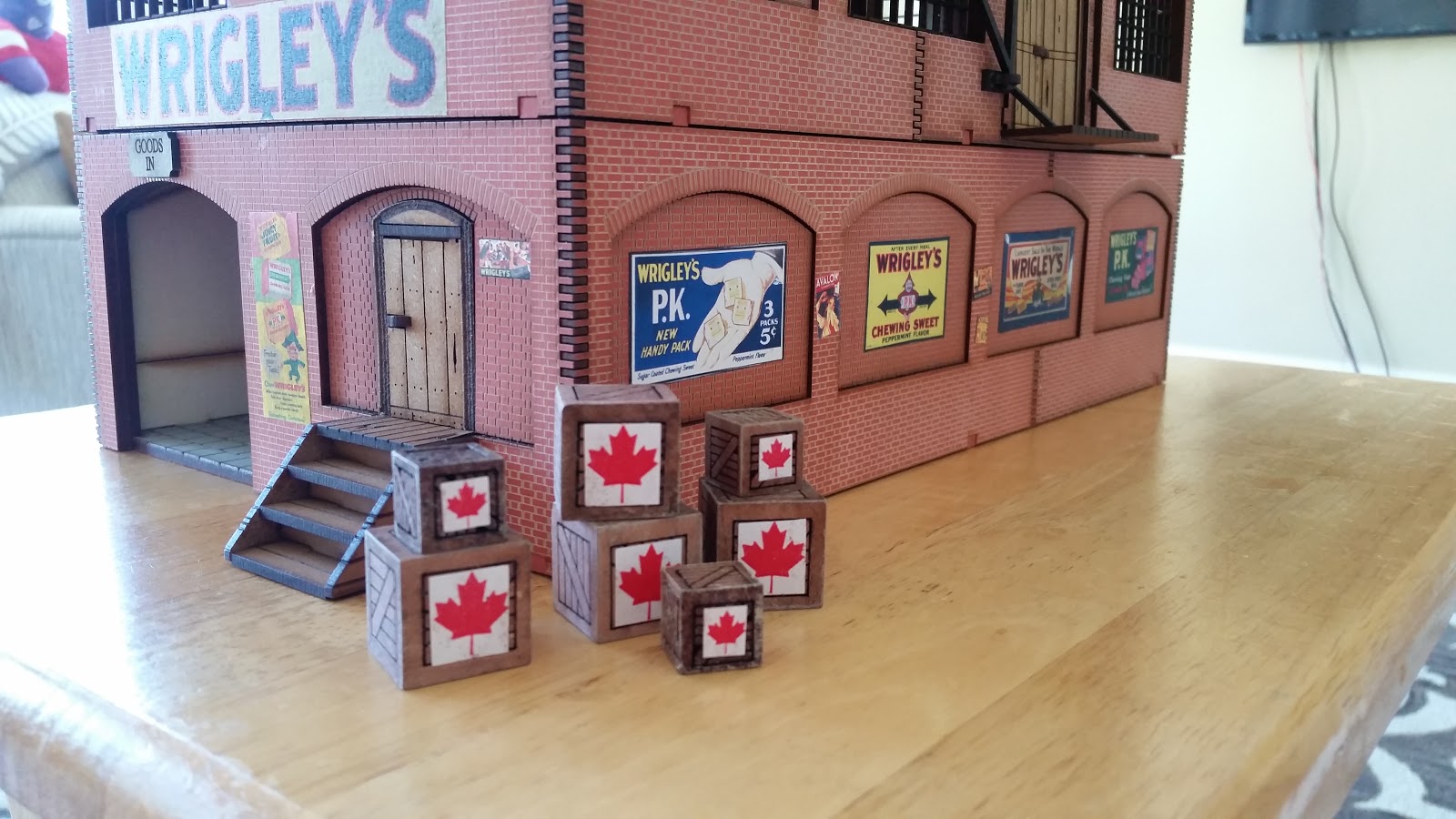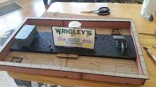 Next up was to make the large billboard that will sit on the top of the roof. It was off of Ebay that I found some billboard supports from Miller Engineering (the same company that make the animated signs I had originally thought of using). The main board for the sign came from the other side of the roof part I didn't use - the tile created a nice detail to the back of the sign and also along the top, making it look almost like a crown in a way. "The King of Gum in Chicago, Wrigley's!"