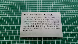 If you pre-ordered the rule book you received an exclusive figure for free, The Photographer. Civilians have special rules in TCW, so he came with a card explaining his. Which ever side has control of the Photographer (I'll go into more detail on how that happens in the rules overview post) is allowed to move him up to 6 inches and then take a photograph, this allows one as yet activated friendly model to re-roll one dice roll that turn. Kind of neat little addition and I'm definitely looking forward to more stuff like this!